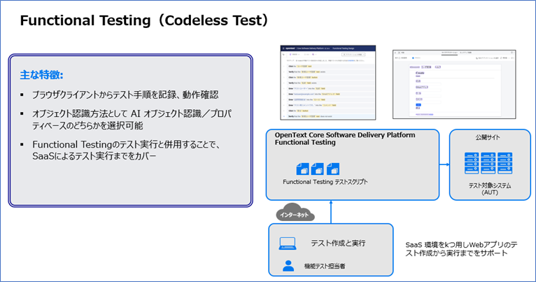 前回(第6回)で説明しました「AIオブジェクト認識機能」を使用することが可能であり、Webおよびモバイルアプリのテスト自動化をSaaSのリソースを使用して効率的に実施するためのソリューションです。