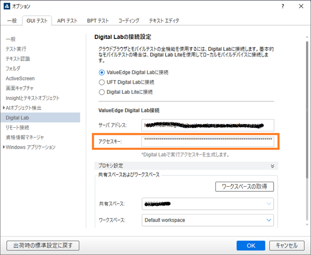 ローカルのFunctional Testingのスクリプトからテストを実行したい場合は、OpenText™ Software Delivery PlatformのFunctional Testing Lab for Mobile and Webの設定からアクセスキーの生成を実行します。